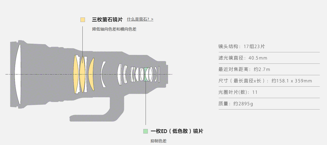 镜头通过内部镜片组结构优化设计,实现了FE 400mm F2.8 GM OSS的整体重心后移,平衡性更佳,移动效率相比SAL500F40G提高50%。