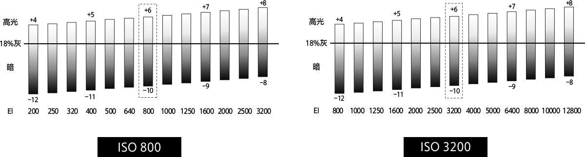ISO ISO 800/3200 (Cine EI 模式下, Base ISO, D55 光源)