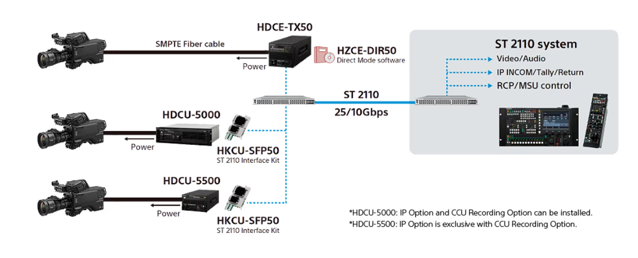带有IP选件的HDCU-5000以及HDCE-TX50摄像机扩展适配器支持将新摄像机系统无缝集成到IP现场制作系统中。